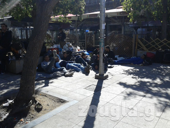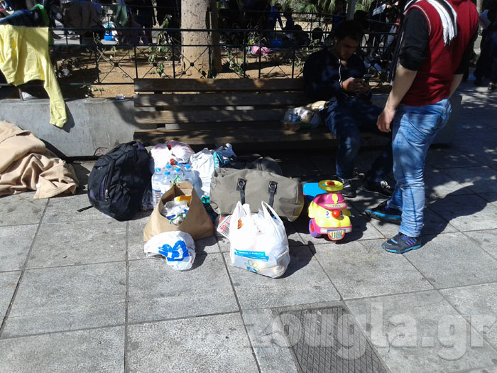 Πρόσφυγες και μετανάστες παραμένουν εγκλωβισμένοι στην πλατεία Βικτωρίας, περιμένοντας να ανοίξουν τα σύνορα της ΠΓΔΜ, για να συνεχίσουν το ταξίδι τους προς τον Βορρά.