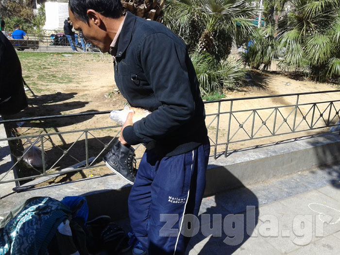 Η κάμερα του zougla.gr κατέγραψε τέτοιες σκηνές το πρωί της Τετάρτης: πρόσφυγες να στριμώχνονται, μόλις αντιλαμβάνονται ότι κάποιος μοιράζει τρόφιμα.