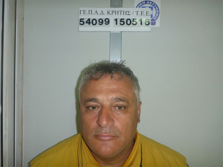 Δίνονται στη δημοσιότητα, κατόπιν σχετικής διάταξης της Εισαγγελίας Πρωτοδικών Χανίων, τα στοιχεία ταυτότητας και φωτογραφίες 56χρονου, ο οποίος συνελήφθη από τη Διεύθυνση Εσωτερικών Υποθέσεων της Ελληνικής Αστυνομίας την 14-05-2016 για διεύθυνση, συγκρότηση και ένταξη σε εγκληματική οργάνωση, η οποία εξαπατούσε ιδιοκτήτες καταστημάτων σε όλη την επικράτεια και αποσπούσε διάφορα χρηματικά ποσά.