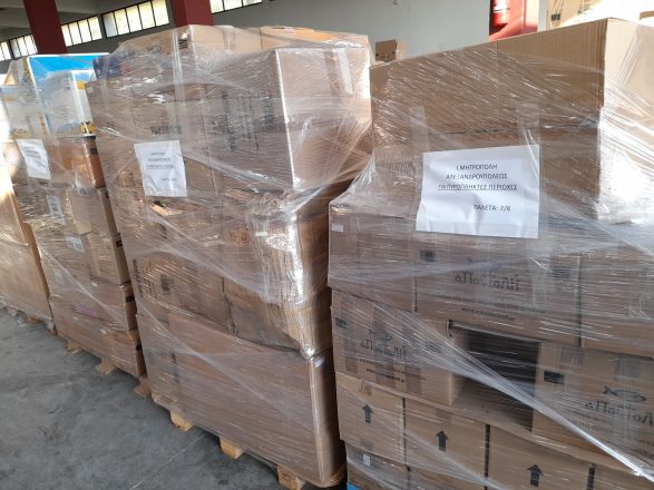 Η ανθρωπιστική βοήθεια περιλαμβάνει χιλιάδες είδη από τρόφιμα μακράς διαρκείας, είδη ατομικής υγιεινής και φροντίδας, βρεφικά είδη, είδη οικιακών καθαριστικών, κλινοσκεπάσματα, χαρτικά είδη και μάσκες προσώπου.