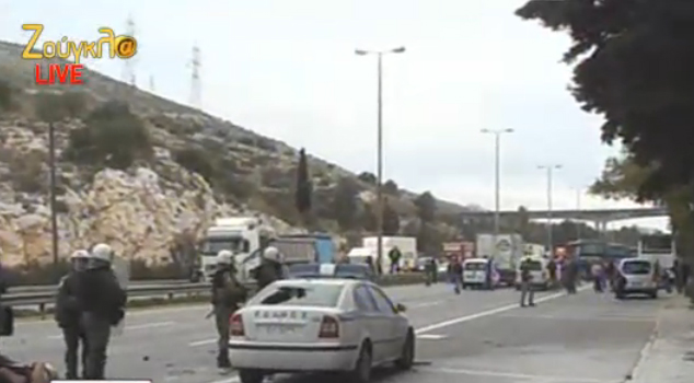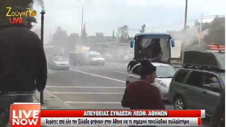 Την ίδια ώρα στη Λεωφόρο Αθηνών στήθηκε αστυνομικός κλοιός με σκοπό την αναχαίτιση του κύματος αγροτών της Πελοποννήσου. Και σε αυτήν την περίπτωση τα ΜΑΤ έκαναν χρήση χημικών, ενώ εξαγριωμένοι αγρότες επιτέθηκαν σε περιπολικό.
