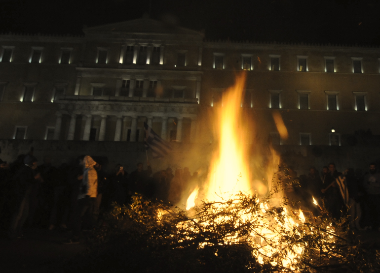 Μετά το τέλος των επεισοδίων οι αγρότες έψαλαν τον εθνικό ύμνο μπροστά από μια ελληνική σημαία και τραγούδησαν το τραγούδι «Πότε θα κάνει ξαστεριά». Αποπνικτική είναι η ατμόσφαιρα στη γύρω περιοχή από την εκτεταμένη ρίψη δακρυγόνων.