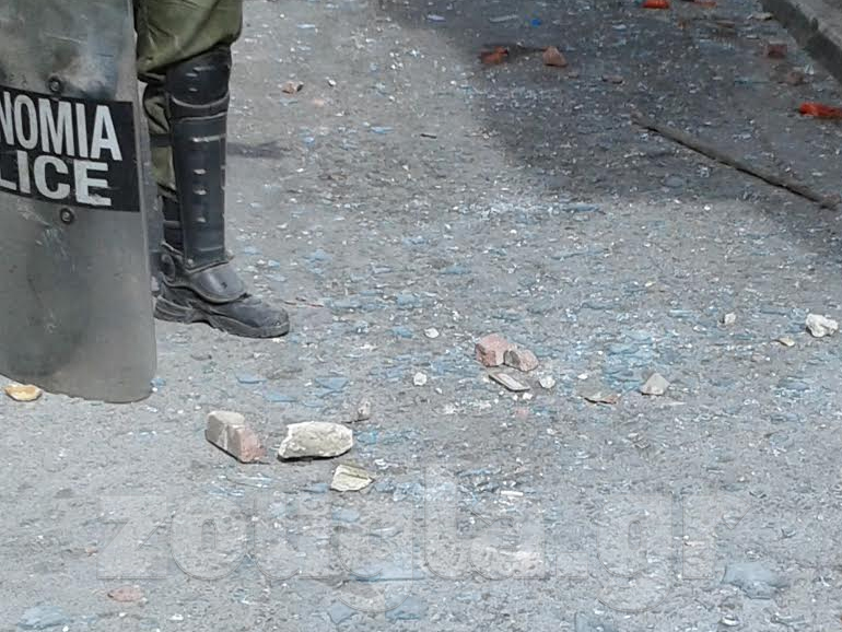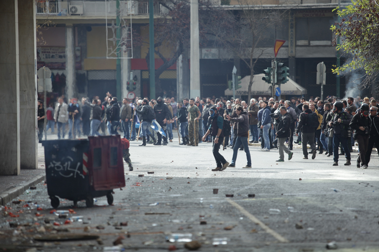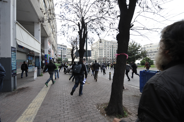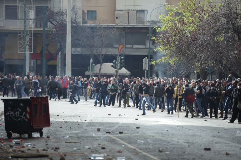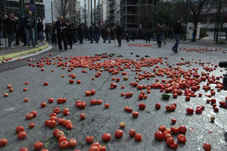 Οι αγρότες στράφηκαν κατά των δυνάμεων των ΜΑΤ, άρχισαν να τις κυνηγούν, πετώντας αντικείμενα και φωνάζοντας συνθήματα, ζητώντας παράλληλα τη διέλευση του βαν. Η ένταση εκτονώθηκε λίγα λεπτά αργότερα και οι παραγωγοί άρχισαν να μεταφέρουν με τα χέρια τους τα τελάρα με τα φρούτα προς το υπουργείο.