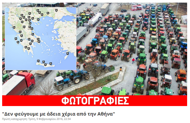 Από το μπλόκα της Νίκαιας, της Πελοποννήσου, του Κορωπίου και της Κρήτης οι αγρότες κατέφθασαν στην Αθήνα. Aφού πρώτα διαπραγματεύτηκαν και εν συνεχεία δέχτηκαν χημικά, βιώνοντας τη διαδικασία των προσαγωγών, συγκεντρώθηκαν στο Σύνταγμα για το μεγάλο παναγροτικό συλλαλητήριο.