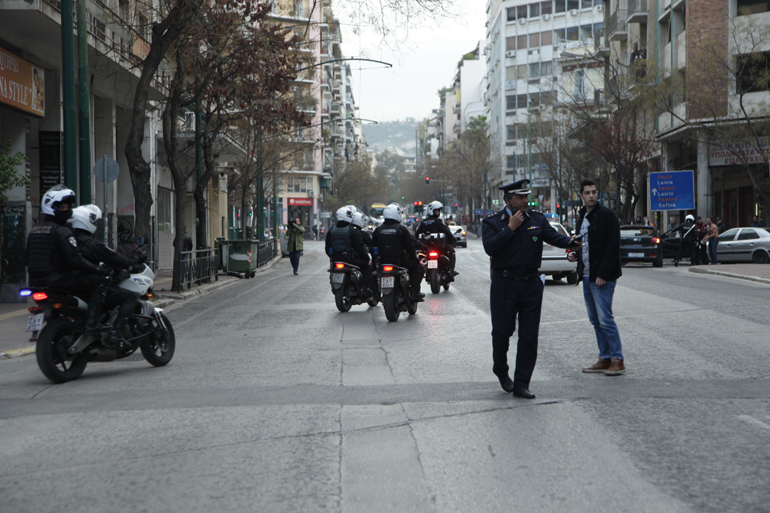 Αστυνομικοί κλείνουν τον δρόμο έξω από το υπουργείο: