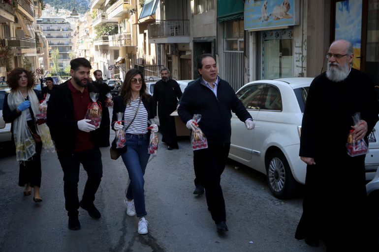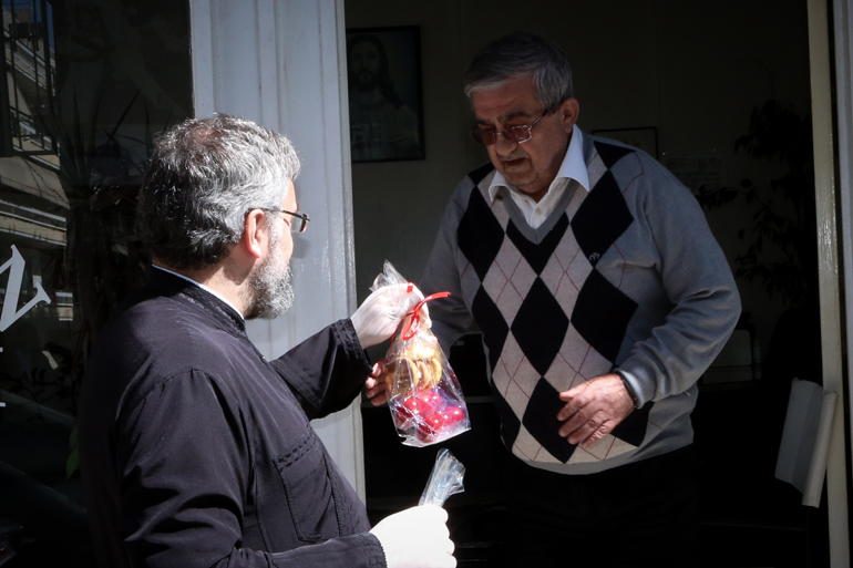 «Καλή Ανάσταση», ευχήθηκαν στον κόσμο ο πρωτοσύγκελος της Αρχιεπισκοπής Αθηνών αρχιμανδρίτης Βαρνάβας Θεοχάρης, με ιερείς και συνεργάτες του Φιλανθρωπικού Οργανισμού «Αποστολή» και του Γενικού Φιλοπτώχου. Μάλιστα, μετά την πρώτη Ανάσταση και με πρωτοβουλία της «Αποστολής» μοιράστηκαν κόκκινα αυγά στον κόσμο που βιώνει τον αιφνιδιασμό και την ανησυχία που έφερε η οδυνηρή πανδημία.