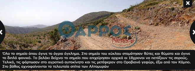 Τη διαδρομή που ακολούθησαν θύτες και θύματα μέχρι το ερημικό σημείο που έγινε το άγριο διπλό έγκλημα κατέγραψε η εφημερίδα «Θάρρος», λίγο πάνω από το αραιοκατοικημένο χωριό των Αλτομυρών.