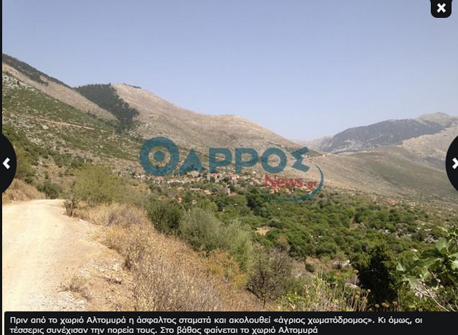 Έπειτα από διαδρομή τουλάχιστον μισής ώρας, στο απόλυτο σκοτάδι, λίγο πριν από το χωριό Αλτομυρά, η άσφαλτος σταματά και ακολουθεί άσχημος χωματόδρομος.