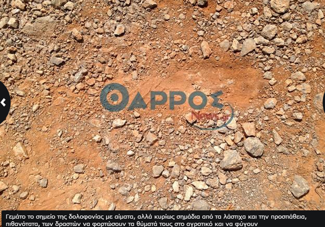 Στο σημείο εκείνο, τι ακριβώς συνέβη γνωρίζουν μόνο οι θύτες και τα θύματα, ενώ είναι γεμάτο σημάδια της διπλής δολοφονίας. Το αίμα των θυμάτων από τους απανωτούς πυροβολισμούς που δέχτηκαν είναι ακόμα εκεί, ενώ τα λάστιχα του αγροτικού έχουν «γράψει» στο χωματόδρομο.