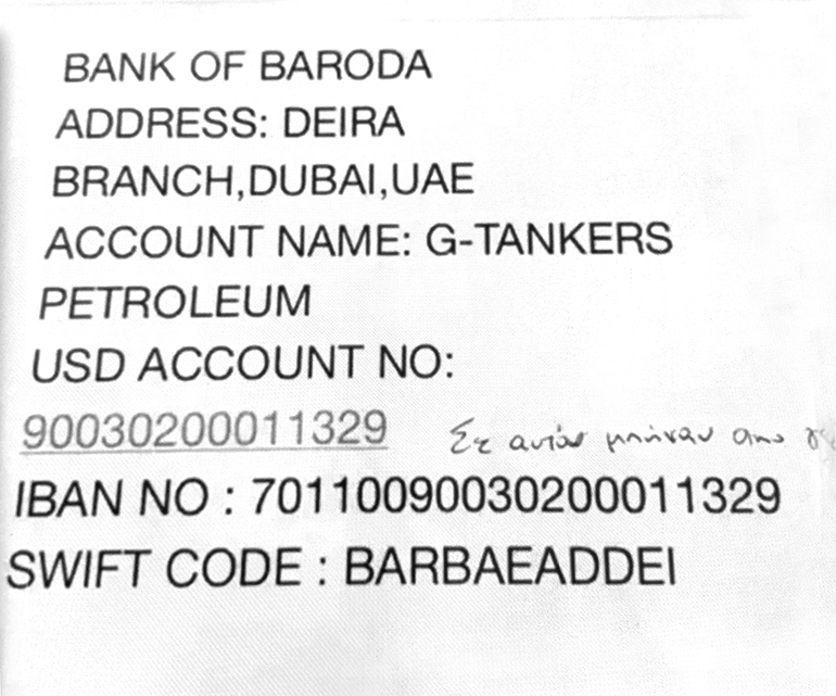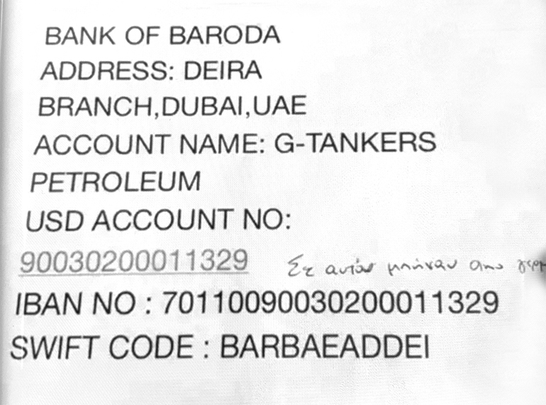 Επίσης, σημειώνεται χαρακτηριστικά ότι κατόπιν «ένορκης εξέτασης οι συναλλαγές που αποτυπώνονται στον εν λόγω λογαριασμό δεν αφορούν σε πραγματικές εμπορικές συναλλαγές οιουδήποτε είδους μεταξύ της εταιρείας συμφερόντων του G-Tankers και των εταιρειών που πραγματοποιούν πιστώσεις στον λογαριασμό του».