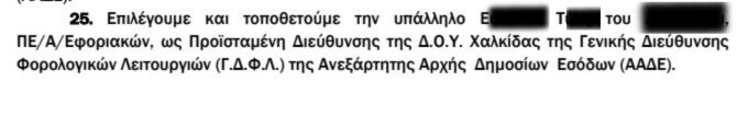 Η διευθύντρια είχε τοποθετηθεί με απόφαση του διοικητή της ΑΑΔΕ