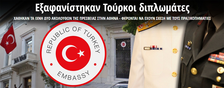 Τρεις τούρκοι στρατιωτικοί ακόλουθοι, δύο της τουρκικής πρεσβείας στην Ελλάδα και ένας στην πρεσβεία της Τουρκίας στη Βοσνία, αγνοούνται μετά την ανάκλησή τους από την Αγκυρα στο πλαίσιο των ερευνών που ακολούθησαν το αποτυχημένο πραξικόπημα της 15ης Ιουλίου, επιβεβαίωσε Τούρκος αξιωματούχος στο Reuters, μετά τα σχετικά δημοσιεύματα των τελευταίων ημερών.
