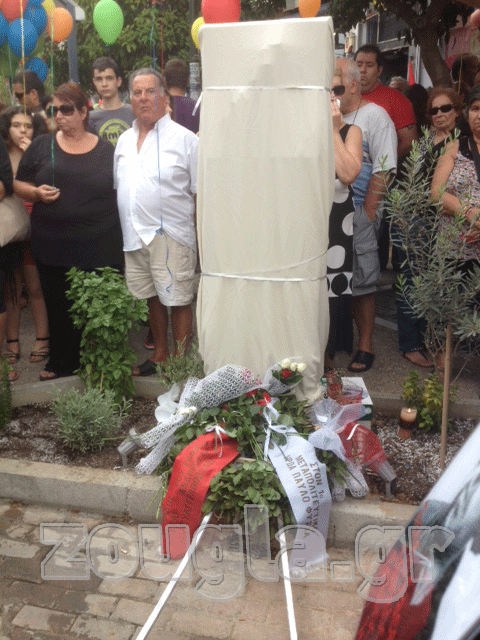 Στις 15:00, παρουσία της οικογένειας και φίλων του Παύλου Φύσσα, έγιναν τα αποκαλυπτήρια μνημείου, στην οδό Παναγή Τσαλδάρη 60.
