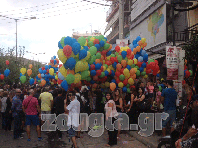Στις 16:00 ακολούθησε καλλιτεχνική εκδήλωση και στη συνέχεια πορεία προς την Πλατεία Παγκόσμιας Ειρήνης στον Κορυδαλλό, όπου οι συμμετέχοντες άφησαν χιλιάδες μπαλόνια να πετάξουν στον ουρανό.