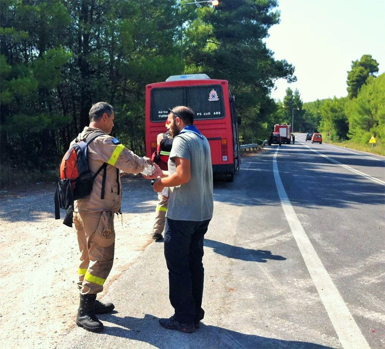 Στις 15 Αυγούστου 2017, νωρίς το πρωί, 53 ενήλικα στελέχη κατέφθασαν και έστηναν το γραφείο συντονισμού τους, στις εγκαταστάσεις της Δημοτικής Κοινότητας Καπανδριτίου του Δήμου Ωρωπού. Σε συνεργασία με ιδιωτικές εταιρίες και στρατηγικούς συνεργάτες συγκέντρωσαν μεγάλες ποσότητες εμφιαλωμένου νερού και υλικών. Σε συντονισμό με την Πολιτική Προστασία και την Διοικητική Μέριμνα της Πυροσβεστικής Υπηρεσίας, μοίρασαν πάνω από 950 μπουκάλια νερό και 600 σάντουιτς και μπισκότα στις δυνάμεις πυρόσβεσης στην ευρύτερη περιοχή του Καπανδριτίου.
