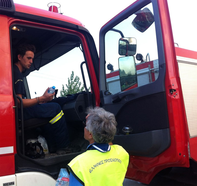 Οι Έλληνες Πρόσκοποι, από την πρώτη στιγμή της εκδήλωσης της δασικής πυρκαγιάς στην Αττική κινητοποιήθηκαν, οργανώθηκαν σε ομάδες και ανέμεναν οδηγίες από το Πυροσβεστικό Σώμα για να βοηθήσουν.