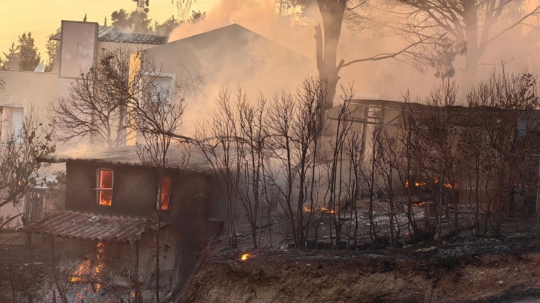 Σπίτια «καπνίζουν» ακόμη, δέντρα μετατράπηκαν σε κάρβουνο, περιουσίες αποτεφρωμένες και ρημαγμένες και στο φυσικό τοπίο να κυριαρχεί το πένθιμο χρώμα της φωτιάς.