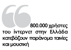 «Υπολογίζουμε ότι αυτή τη στιγμή τουλάχιστον 800.000 χρήστες στην Ελλάδα κατεβάζουν παράνομα ταινίες και μουσική», αναφέρει στο zougla.gr o Διευθυντής της Δίωξης Ηλεκτρονικού Εγκλήματος της ΕΛ.ΑΣ., Μανώλης Σφακιανάκης. «Κάνουμε ένα σαφάρι καθημερινά μέσα στο Διαδίκτυο για να εντοπίζουμε τέτοιες ιστοσελίδες. Ως χώρα κατατασσόμαστε στις πρώτες θέσεις στο κατέβασμα τραγουδιών και ταινιών. Πάντοτε όταν κλείνουμε μια σελίδα ανοίγει μια άλλη. Υπάρχει ένα παγκόσμιο κυνήγι λόγω μεγάλης φοροδιαφυγής», προσθέτει.