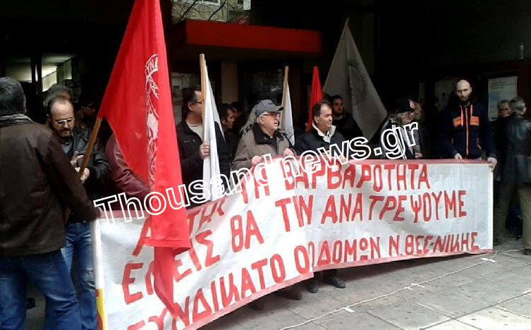 Σε μια πρωτότυπη διαμαρτυρία για τις προωθούμενες αλλαγές στο Ασφαλιστικό προχώρησαν το πρωί της Παρασκευής μέλη του συνδικάτου οικοδόμων του Νομού Θεσσαλονίκης.