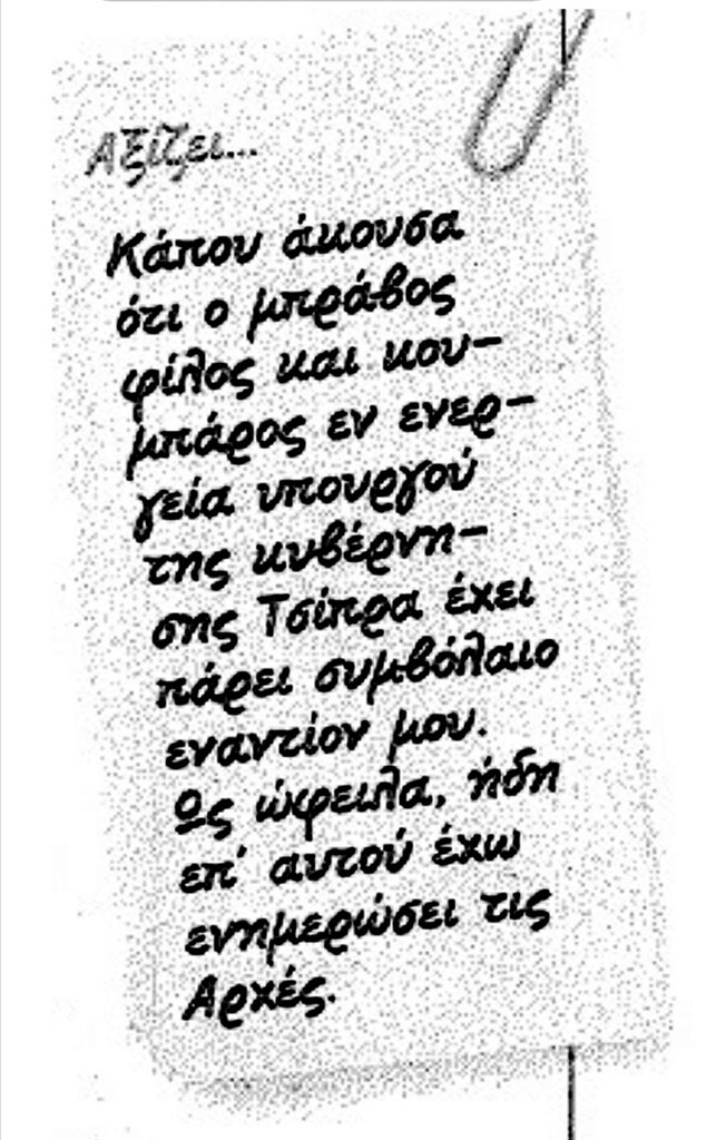 Άρα, κάτι άλλο συμβαίνει. Η ακολουθία των δύο προαναφερομένων δημοσιευμάτων περιπλέκει την ιστορία της δολοφονίας. Αυτοί που κρύβονται πίσω από τα δύο δημοσιεύματα, το πρώτο περί σκευωρίας και το δεύτερο με το μονόστηλο, στρέφουν από μόνοι τους την προσοχή της αστυνομικής έρευνας προς τους εαυτούς τους. Δεν το αντιλαμβάνονται; Δεν υπονοούμε κάτι, αλλά είναι ηλίου φαεινότερον πως οι Αρχές εκ των πραγμάτων θα διερευνήσουν εάν συνδέονται αυτά τα δημοσιεύματα με το τραγικό τέλος του Σπύρου Παπαχρήστου.
