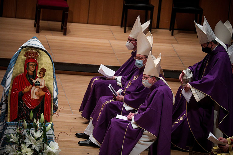 Η Καθολική Θεία Λειτουργία τελείται στο πλαίσιο της τριήμερης επίσκεψης του Πάπα Φραγκίσκου στην Ελλάδα και πραγματοποιείται στην κεντρική αίθουσα του Μεγάρου, Χρήστος Λαμπράκης.
