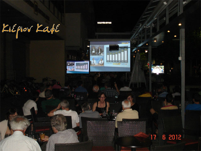 Τόπος συνάντησης, το πασίγνωστο κεντρικό ΚΙΕΡΙΟΝ καφέ. Με αγωνία παρακολούθησαν όλες τις εξελίξεις για το εκλογικό αποτέλεσμα, συντονισμένοι στην τηλεόραση της Ζούγκλας…