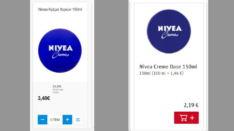 Ένα κουτί NIVEA των 150 ml στη Γερμανία κοστίζει 2,19, ενώ η αντίστοιχη συσκευασία στην Ελλάδα 3,48 ευρώ.