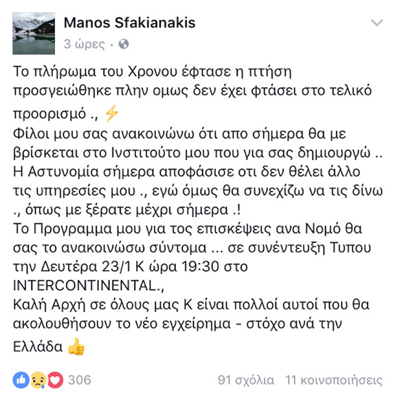 Η αντίδραση του μέχρι πρότινος διευθυντή της υπηρεσίας δίωξης ηλεκτρονικού εγκλήματος, Μανώλη Σφακιανάκη: