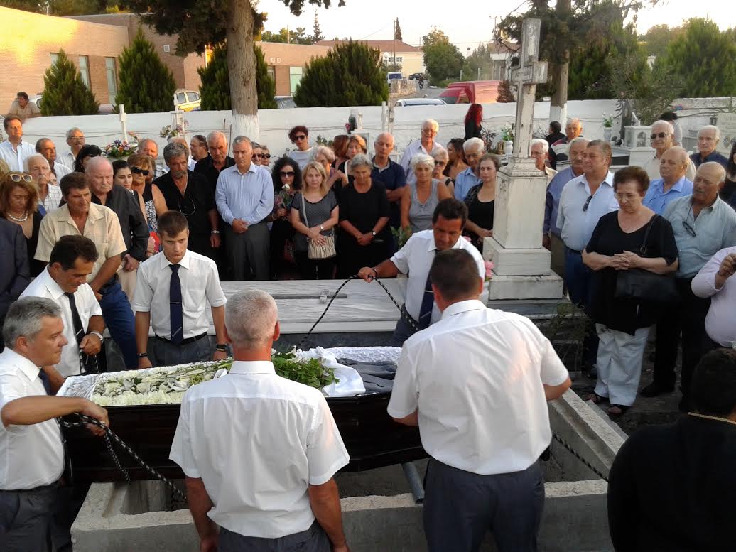Δεκάδες πολίτες ήταν εκεί για το ύστατο χαίρε, ενώ εκκλησιαστικά τροπάρια έψαλε ο σύνδεσμος ιεροψαλτών Κρήτης. Ακολούθησαν επικήδειοι λόγοι ενώ η φιλαρμονική του δήμου παιάνιζε πένθιμα.