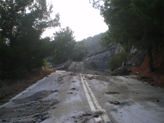 Τεράστια προβλήματα δημιουργήθηκαν στο δρόμο προς το Σταυρό με αποτέλεσμα το βράδυ το χωριό να είναι παντελώς αποκλεισμένο. Το πρωί με πρωτοβουλία ιδιωτών, φορτωτής προχώρησε και έδωσε μια στοιχειώδη βατότητα στο δρόμο.