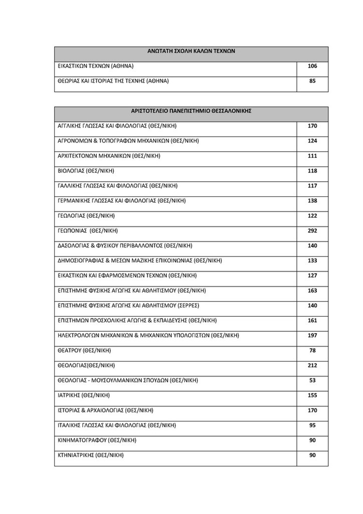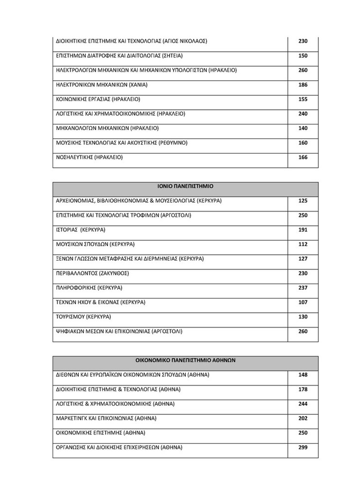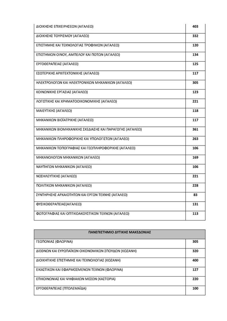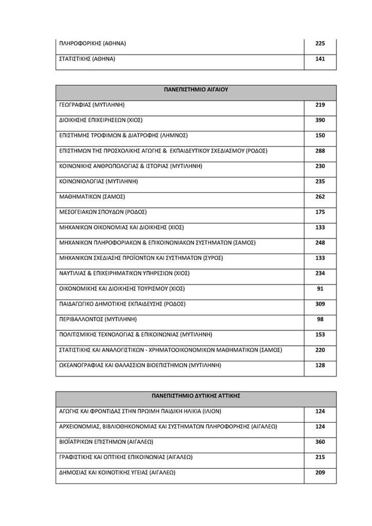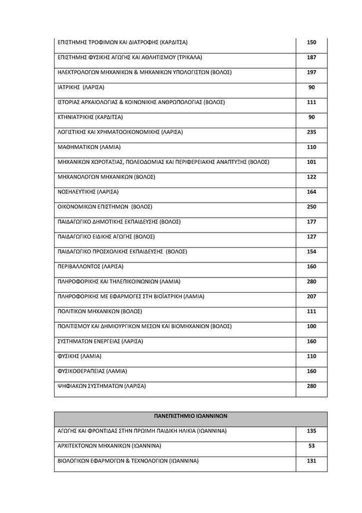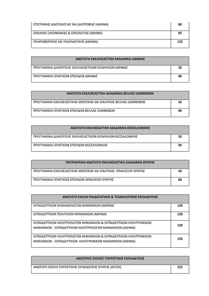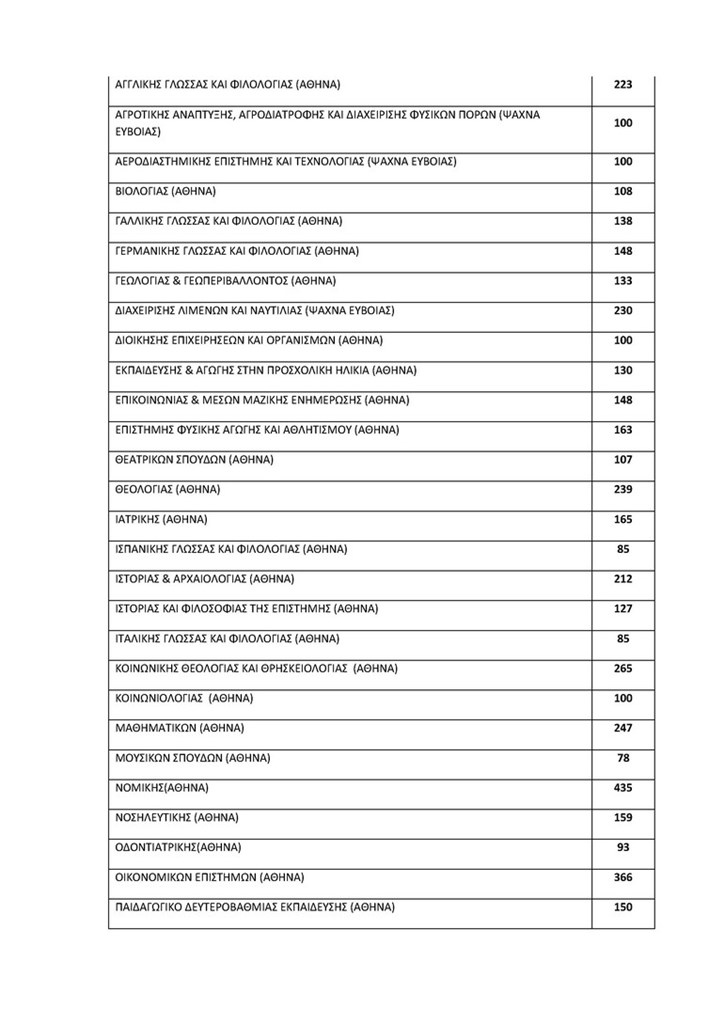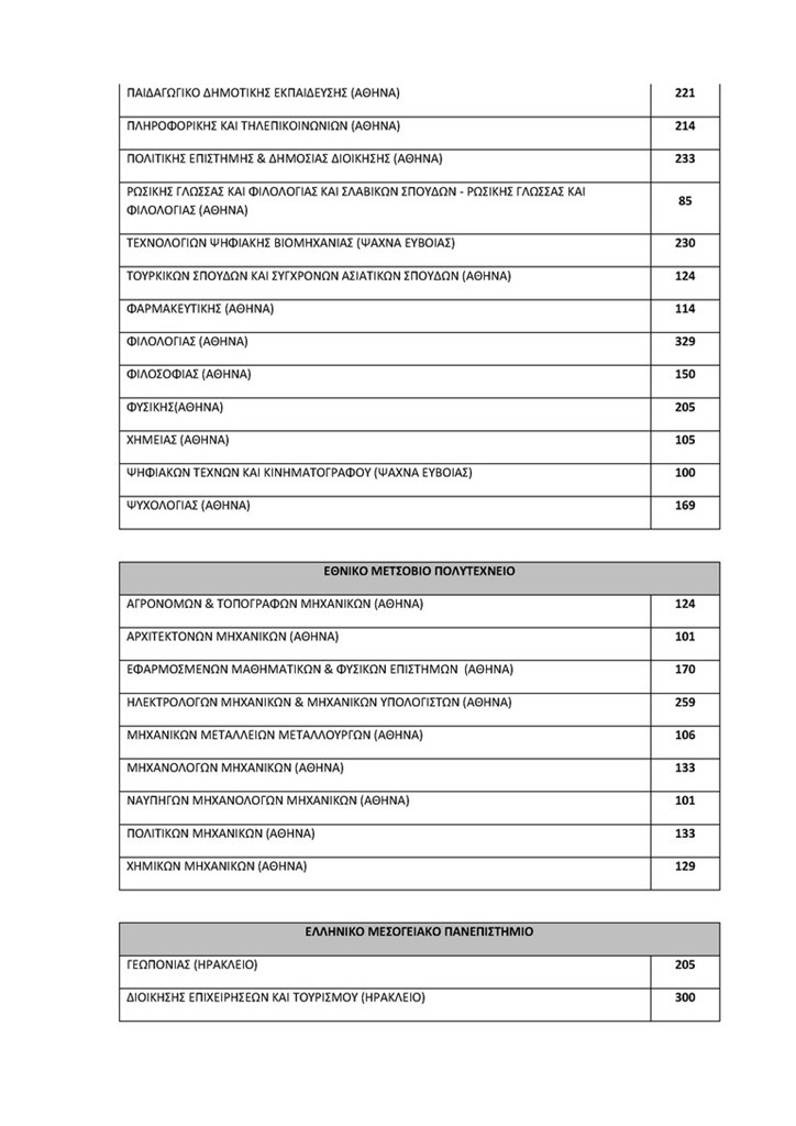 Αναλυτικά ο αριθμός εισακτέων ανά Ίδρυμα, Σχολή, Τμήμα και Εισαγωγική Κατεύθυνση Τμημάτων για το ακαδημαϊκό έτος 2020-2021 καθορίζεται ως ακολούθως: