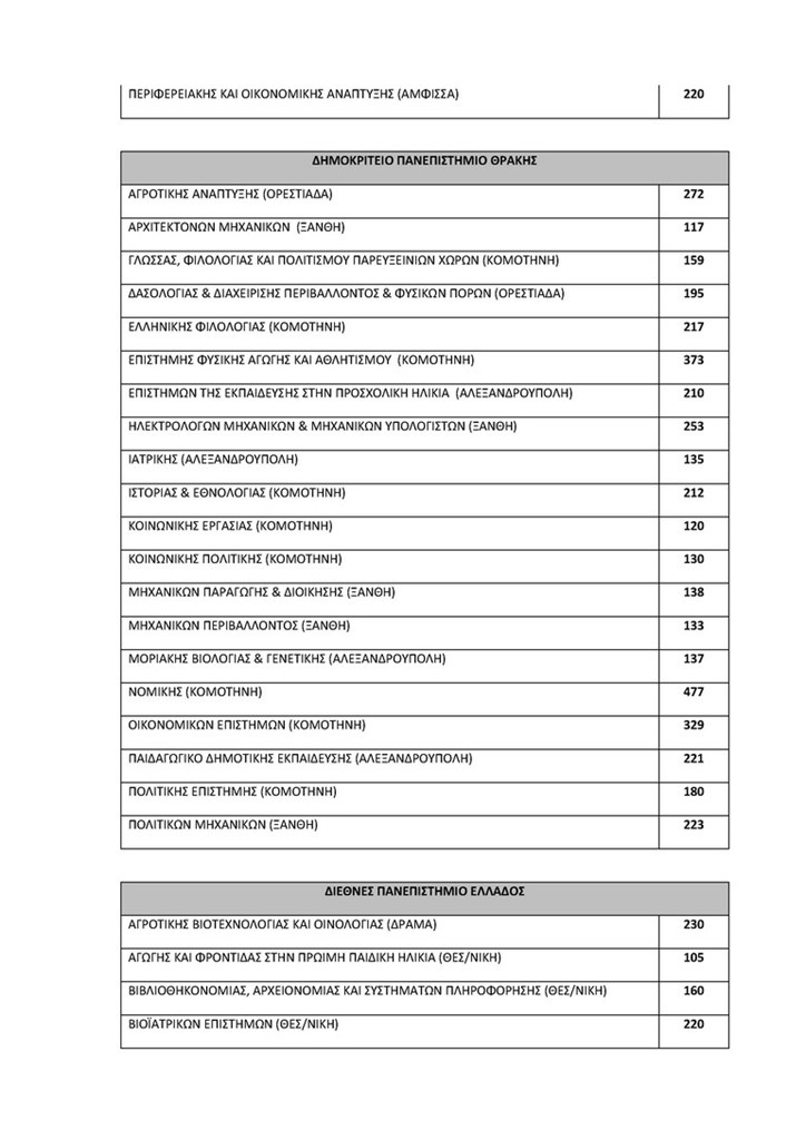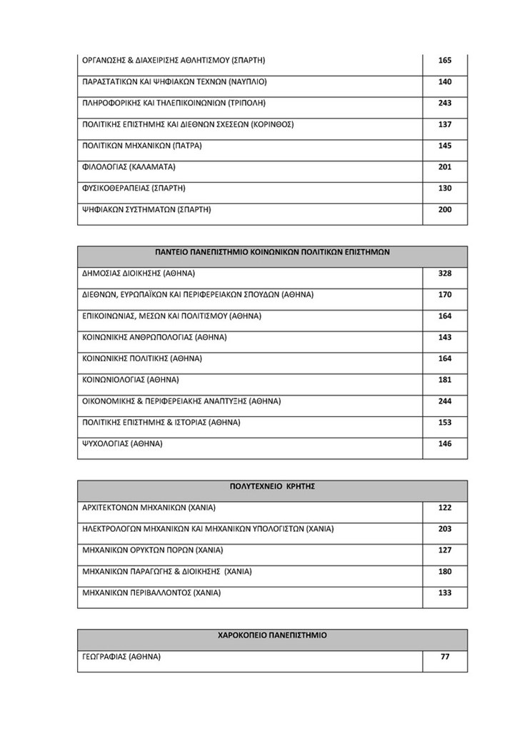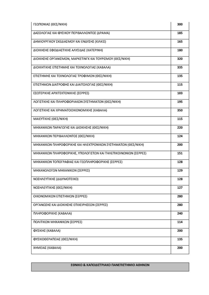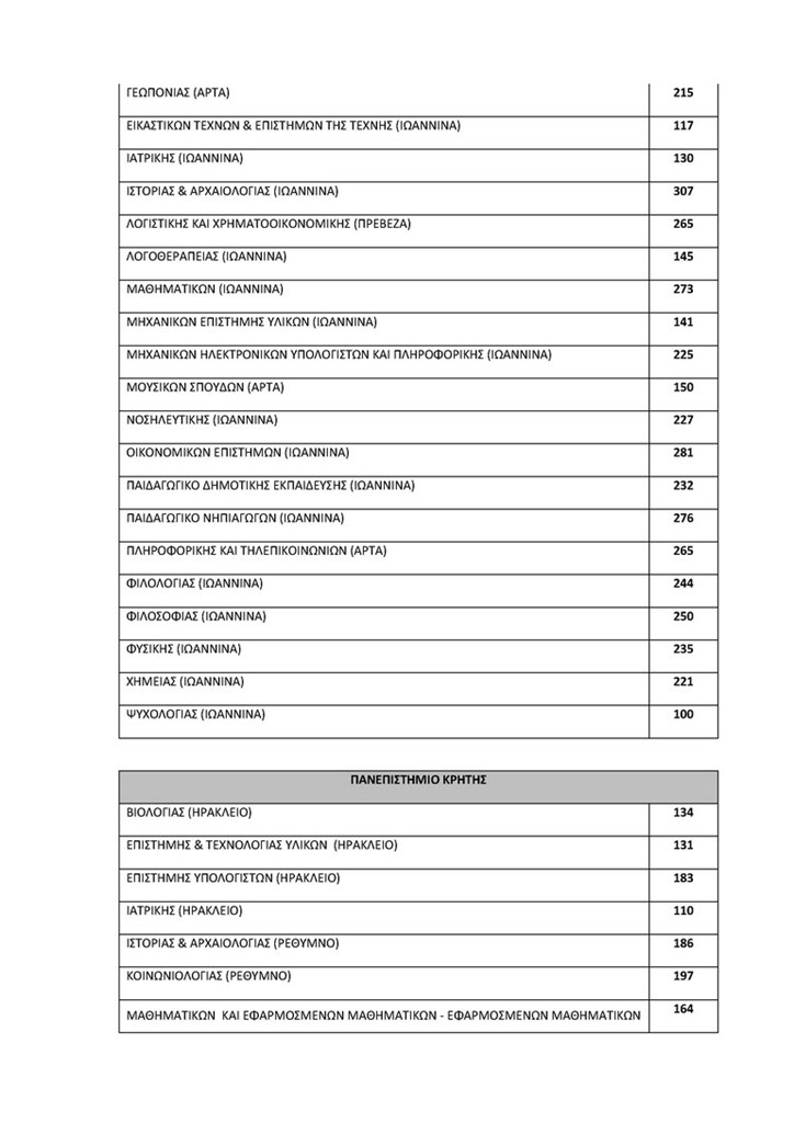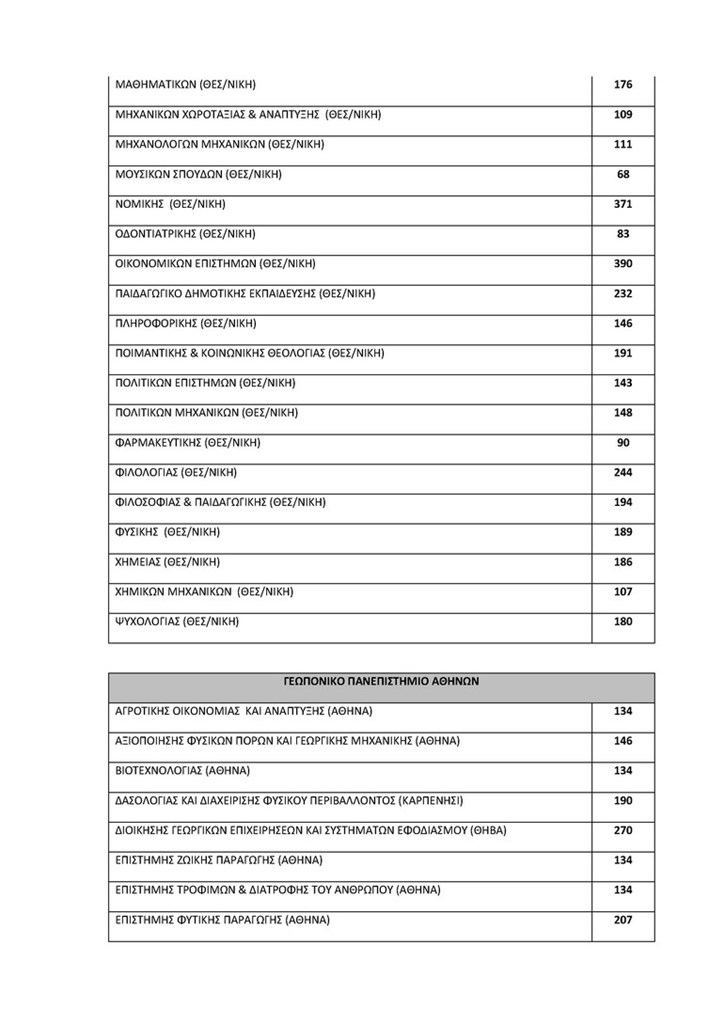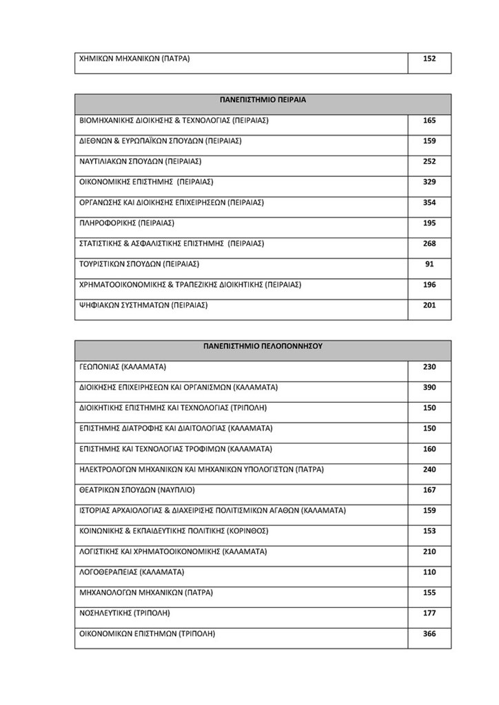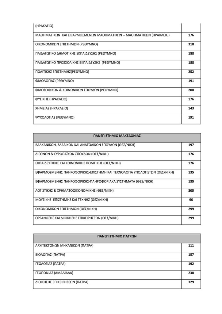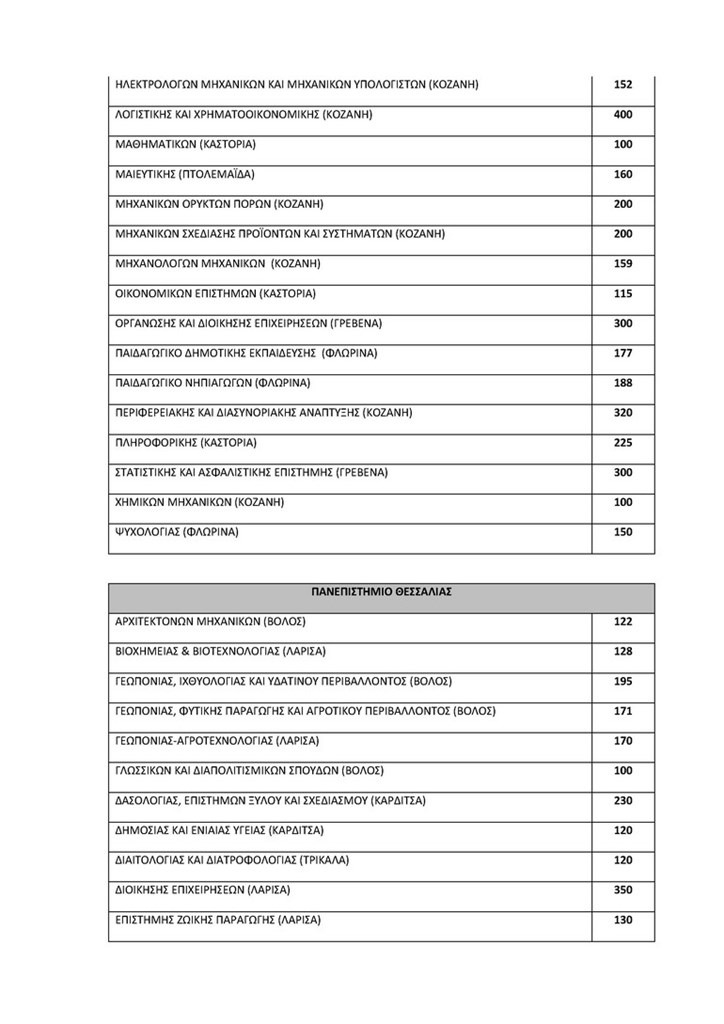Αναλυτικά ο αριθμός εισακτέων ανά Ίδρυμα, Σχολή, Τμήμα και Εισαγωγική Κατεύθυνση Τμημάτων για το ακαδημαϊκό έτος 2020-2021 καθορίζεται ως ακολούθως: