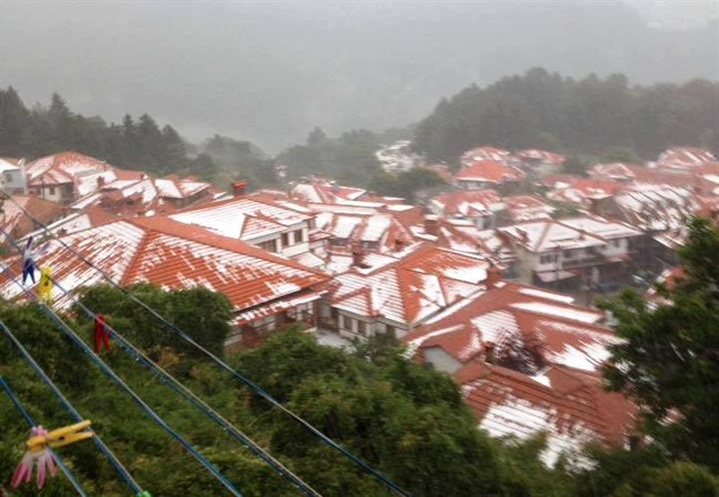 Χειμώνα θύμιζε την Κυριακή το Μέτσοβο, με τα κεραμίδια των σπιτιών να γίνονται κάτασπρα από το χαλάζι… Σύμφωνα με την τοπική ιστοσελίδα epiruspost.gr, η χαλαζόπτωση προκάλεσε τεράστιες καταστροφές σε αμπέλια και άλλες καλλιέργειες της περιοχής.