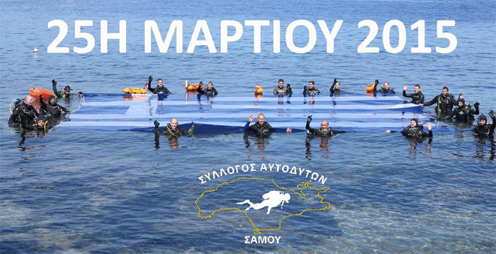 Τη μεγαλύτερη Ελληνική σημαία κάτω από την επιφάνεια της θάλασσας, άπλωσαν τα μέλη του Συλλόγου Αυτοδυτών Σάμου και με τον δικό τους ξεχωριστό τρόπο γιόρτασαν μαζί με τις οικογένειες τους, την Εθνική Επέτειο της 25ης Μαρτίου.