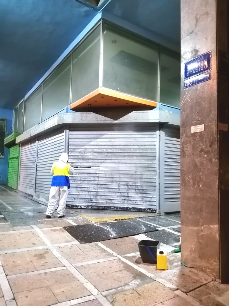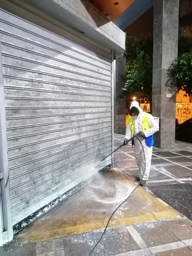 Ωστόσο, τα ειδικά συνεργεία, αξιοποιώντας τον σύγχρονο εξοπλισμό τους, κατάφεραν μέσα σε 20 ημέρες να καθαρίσουν 1.773 τ.μ. από ρολά 90 καταστημάτων, 727 τ.μ μαρμάρινων επιφανειών, 580 τ.μ μεταλλικών επιφανειών, 144 τ.μ από περίπτερα, 60 τ.μ γυάλινες επιφάνειες και 13 τ.μ τηλεφωνικών θαλάμων.