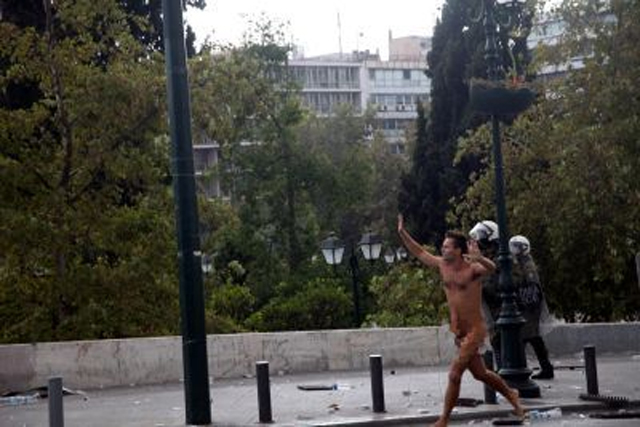 Από ό,τι φαίνεται πάντως, δεν αρκέστηκε μία φορά σε αυτή την πρωτότυπη διαμαρτυρία. Αργά το απόγευμα της Τρίτης, ξαναδιαμαρτυρήθηκε γυμνός, αυτή τη φορά μπροστά από το μνημείο του Αγνώστου Στρατιώτη. Όπως ήταν φυσικό, προσήχθη σχεδόν αμέσως, αλλά στη συνέχεια αφέθηκε ελεύθερος.