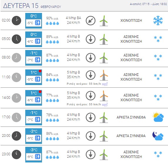 Καιρικές συνθήκες της Δευτέρας 15 Φεβρουαρίου στο κέντρο της Θεσσαλονίκης: