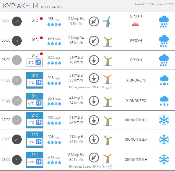 Καιρικές συνθήκες της Kυριακής 14 Φεβρουαρίου στο κέντρο της Θεσσαλονίκης:
