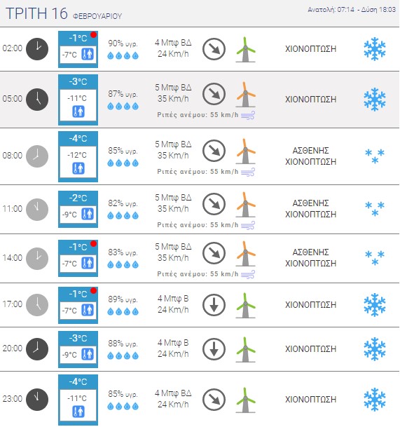 Καιρικές συνθήκες της Τρίτης 16 Φεβρουαρίου στα Βόρεια Προάστια της Αττικής: