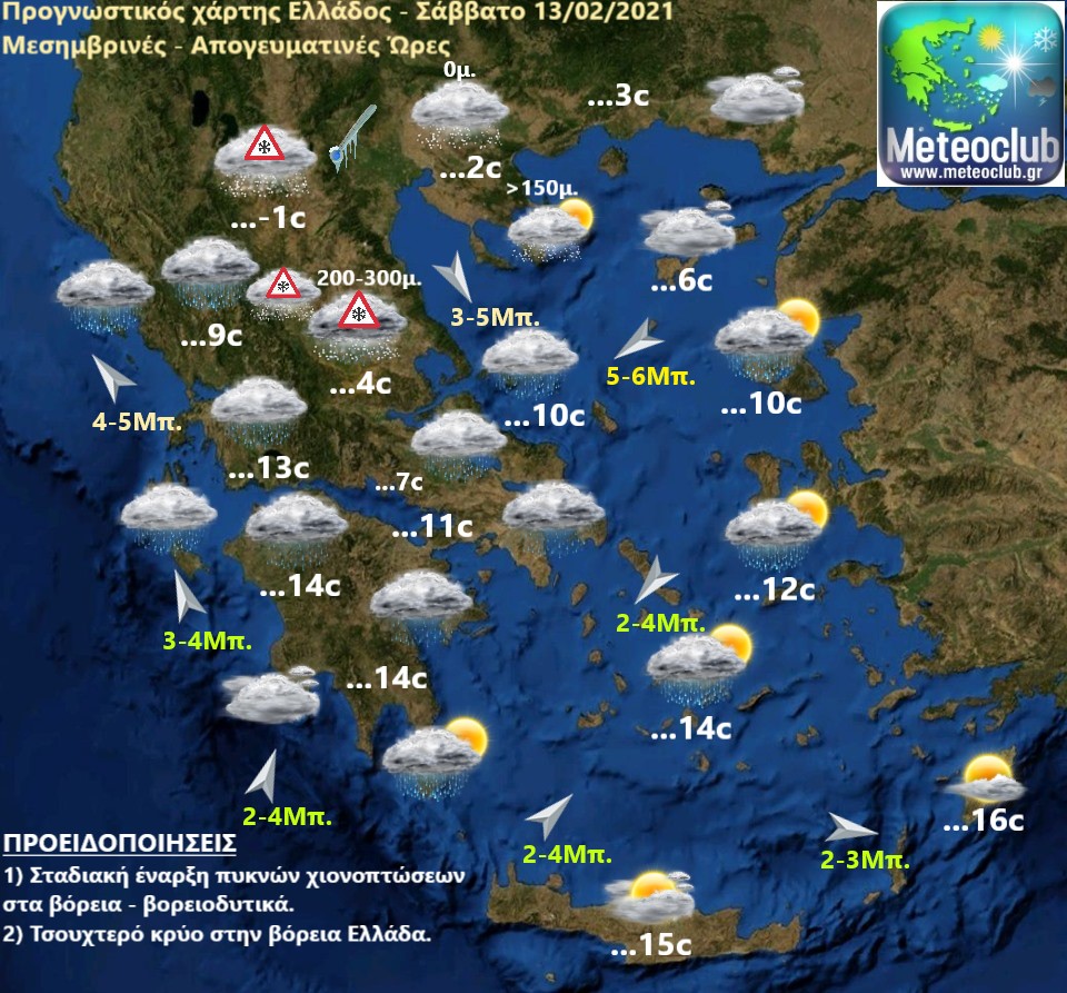 Από το πρωί του Σαββάτου 13/02 έως και την Κυριακή 14/02 τα κύρια χαρακτηριστικά του καιρού θα είναι: