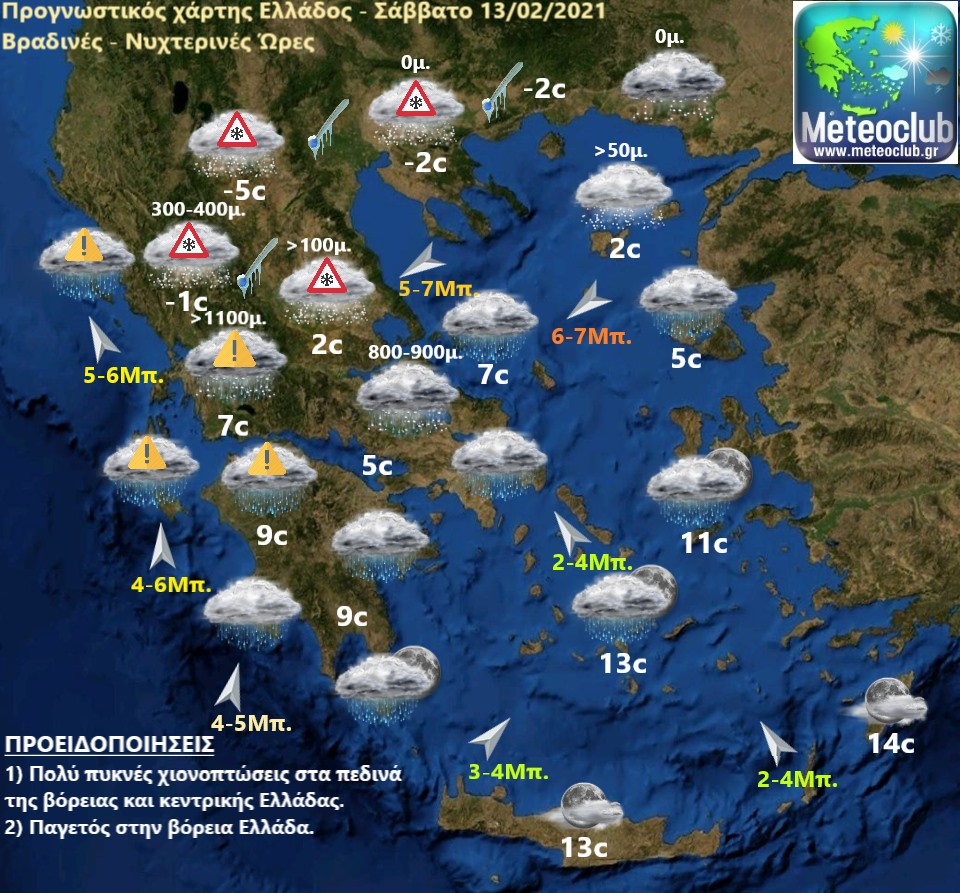 - Βροχές ή χιονόνερο στα πεδινά (έως το απόγευμα του Σαββάτου) και στα παραθαλάσσια