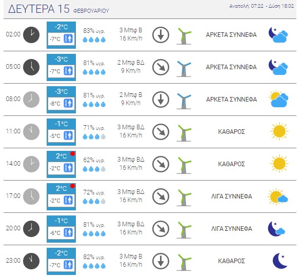 Καιρικές συνθήκες της Δευτέρας 15 Φεβρουαρίου στα Βόρεια Προάστια της Αττικής: