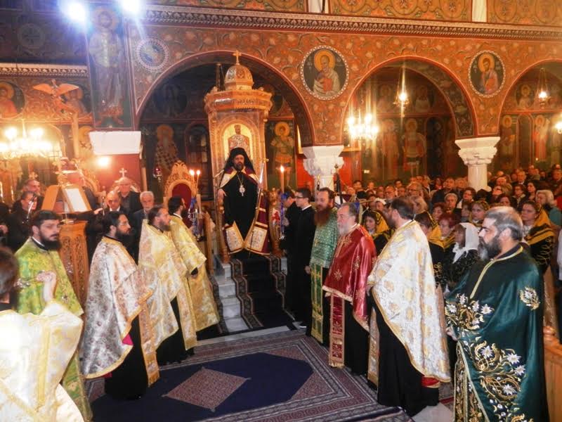 Οι απόγονοι των προσφύγων της Μικρασιατικής γης υποδέχθηκαν τον κ. Βαρθολομαίο στον προσφυγικό Ναό της Ευαγγελιστρίας, όπου τελέστηκε Μέγας Πανηγυρικός Εσπερινός, χοροστατούντος του Ποιμενάρχου της Σμύρνης, συγχοροστατούντων των Σεβ. Μητροπολιτών Βελεστίνου κ. Δαμασκηνού και Δημητριάδος κ. Ιγνατίου, παρουσία της Αντιπεριφερειάρχου Θεσσαλίας κ. Δωροθέας Κολυνδρίνη, του Βουλευτού Μαγνησίας κ. Χρήστου Μπουκώρου, εκπροσώπων των στρατιωτικών Αρχών και της Τοπικής Αυτοδιοίκησης.