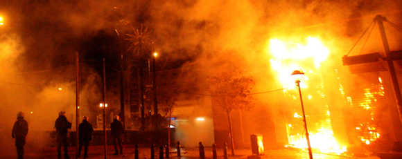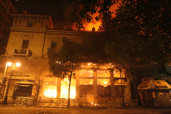 Πυρπολήθηκαν συνολικά 45 κτήρια. Τράπεζες, καταστήματα, καφετέριες και εμπορικά κέντρα ζώστηκαν από τις φλόγες. Εμπορικές επιχειρήσεις λεηλατήθηκαν. Υποκαταστήματα των τραπεζών βρέθηκαν στο στόχαστρο των διαδηλωτών.