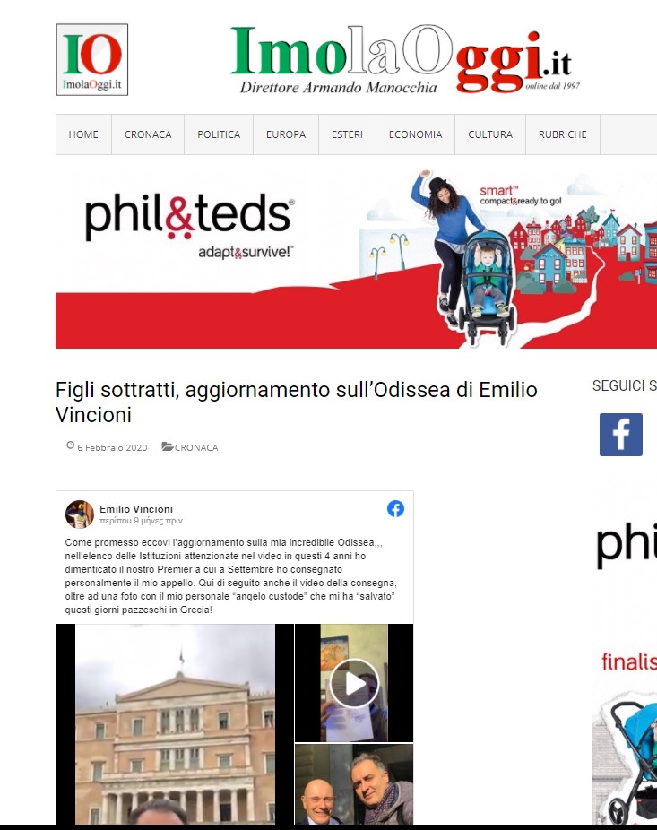 Επιστολή προς τους Ιταλούς πολιτικούς για να βοηθήσουν Ο Ιταλός πατέρας κάνει έκκληση στην Ελληνική Πολιτεία να κοιτάξει το θέμα της συνεπιμέλειας πιο σοβαρά για να μην ανέβουν κι άλλοι πατεράδες τον Γολγοθά που ανεβαίνει εκείνος.