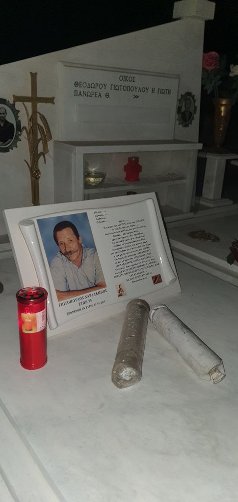 Τα τελευταία τέσσερα χρόνια, τα εγγόνια και οι φίλοι του, θέλοντας να τιμήσουν τη μνήμη του, κατασκευάζουν ένα –δύο χαλκούνια με το όνομά του, τα οποία και ανάβουν  το βράδυ της Μεγάλης Πέμπτης πάνω από το μνήμα του.