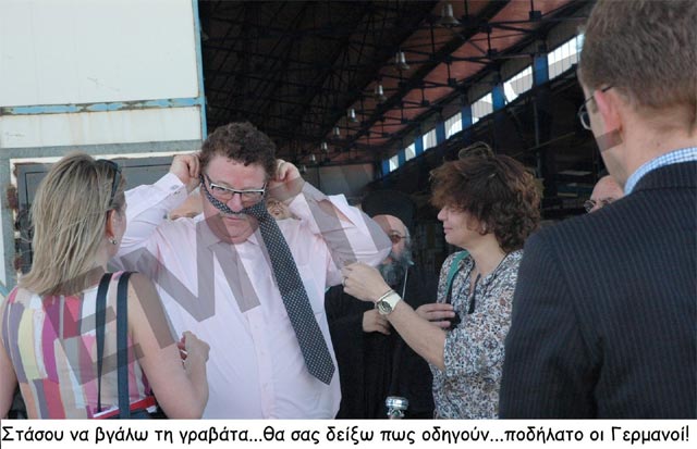 Από την τοπικές αρχές για να υποδεχτούν τον κ. Φούχτελ προσήλθαν στο χώρο του εργοστασίου ο αντιπεριφερειάρχης κ. Φώτης Καραλίδης και ο αντιδήμαρχος κ. Δημήτρης Μπενης και ο πρωτοσύγκελος κ. Σοφρώνιος ο οποίος μάλιστα μετέφερε στον κ Φούχτελ τα λόγια του μητροπολίτη Ξάνθης κ. Παντελεήμονα. Συγκεκριμένα του είπε: «Ο σεβασμιότατος μας σας παρακαλεί να μην επιβαρύνετε άλλο τον ελληνικό λαό. Ο ελληνικός λαός έχει υποστεί πολλές θυσίες και δεν αντέχει άλλα μέτρα και φόρους». Και ο κ. Φούχτελ του απάντησε: « Γι αυτό ακριβώς είμαι εδώ! Σας ευχαριστώ που νοιάζεστε για τα προβλήματα και τον κόσμο εδώ στην Ξάνθη.