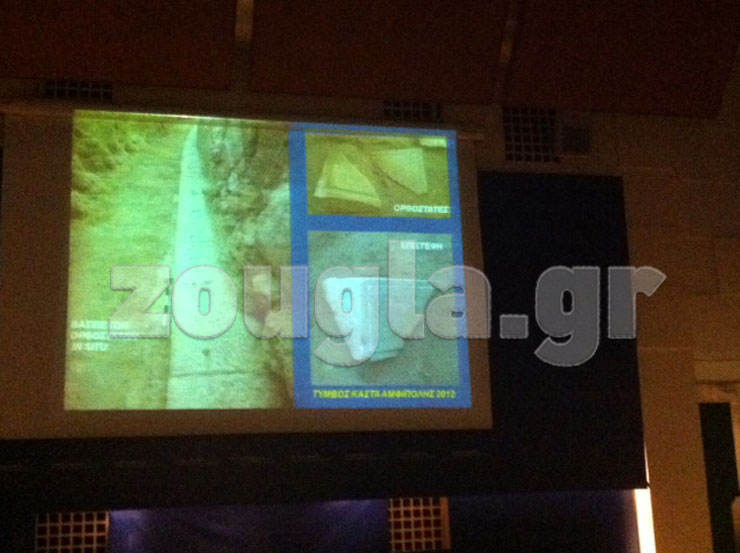 Κατά τ’ άλλα, ο αρχιτέκτονας Μιχάλης Λεφαντζής αποκάλυψε ότι βρέθηκαν τεκτονικά γράμματα χαραγμένα στον περίβολο του Τύμβου Καστά, ενώ ο πολιτικός μηχανικός Δημήτρης Εγγλέζος περιέγραψε τα μηχανικά μέτρα που ελήφθησαν για τις ανασκαφές.