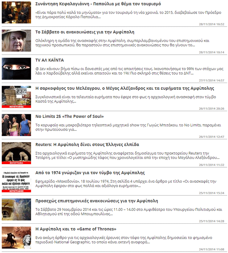 Και συνέχισε λέγοντας: «Την Αμφίπολη τη γνωρίζετε, είναι ένας πολύτιμος αρχαιολογικός χώρος από τη δεκαετία του ’50, με τις ανασκαφές του αείμνηστου Δημήτρη Λαζαρίδη. Είχαν αποκαλυφθεί τότε τάφοι της εποχής του σιδήρου και της αρχαϊκής εποχής. Ήταν αφημένος για χρόνια (o τάφος), δεν πίστευαν πως είχε να δώσει άλλα πράγματα. Ελπίζαμε να οριοθετήσουμε τον τύμβο, γιατί δεν ήταν στρογγυλός ύστερα από όλα αυτά τα χρόνια και τις ανασκαφές. Σκάψαμε αρκετά ζωνάρια και σταθήκαμε τυχεροί και φτάσαμε κάτω από το αντίθεμα του περιβόλου».