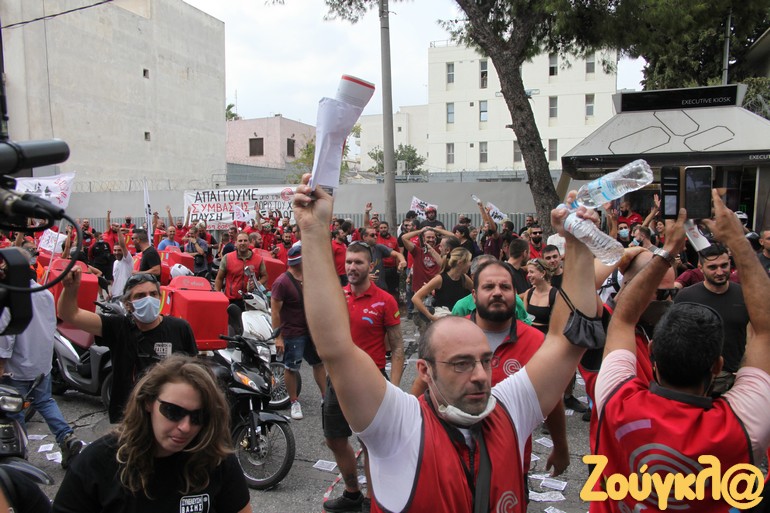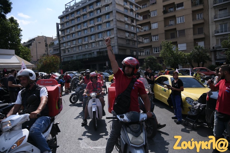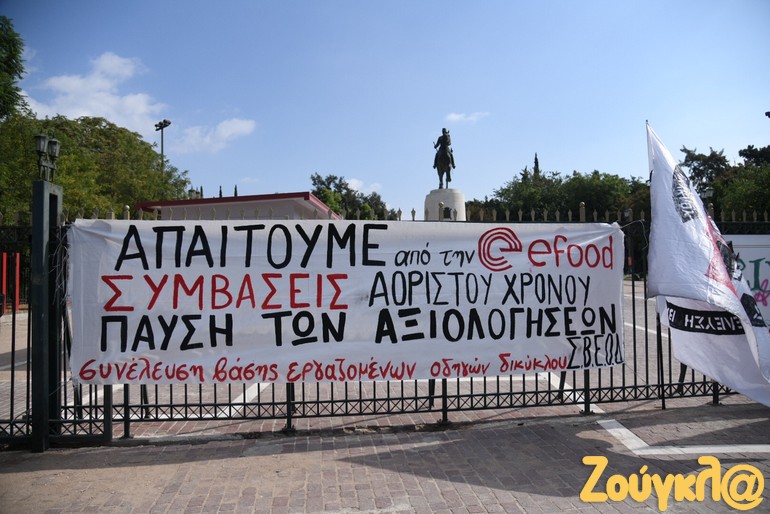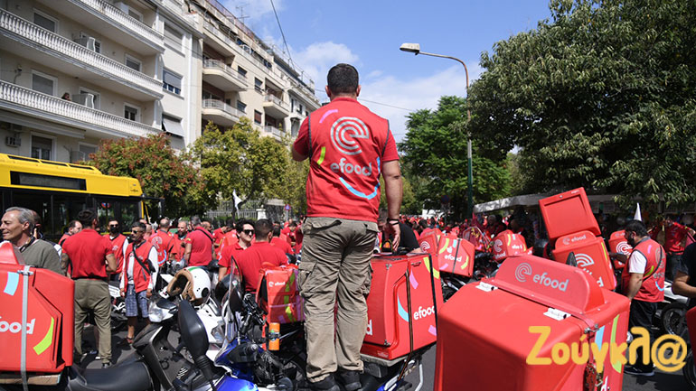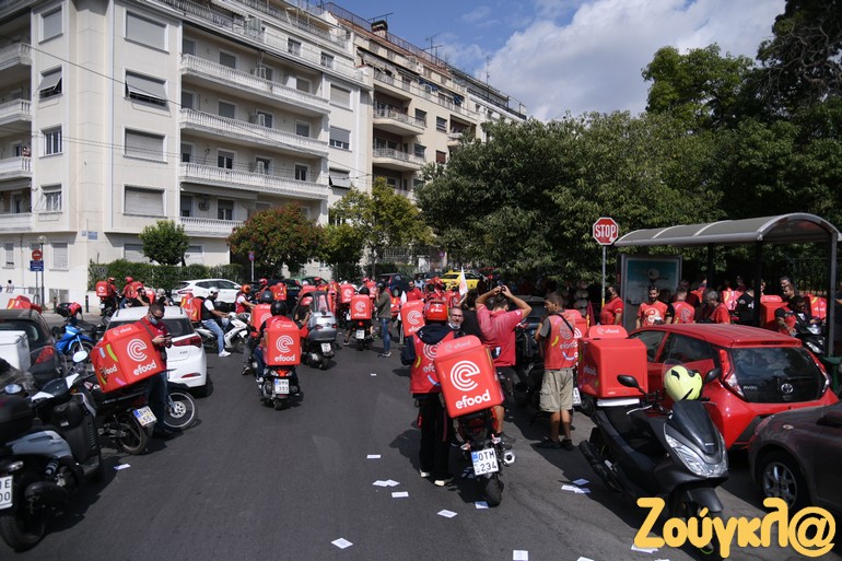 Σε κινητοποιήσεις προχώρησαν οι διανομείς στην Αθήνα, πραγματοποιώντας στάση εργασίας από τις 12 το μεσημέρι έως τις 4 το απόγευμα. Οι διανομείς συγκεντρώθηκαν στο Πεδίον του Άρεως και ακολούθησε μοτοπορεία, που κατέληξε στα γραφεία της efood στο Ν. Ηράκλειο.